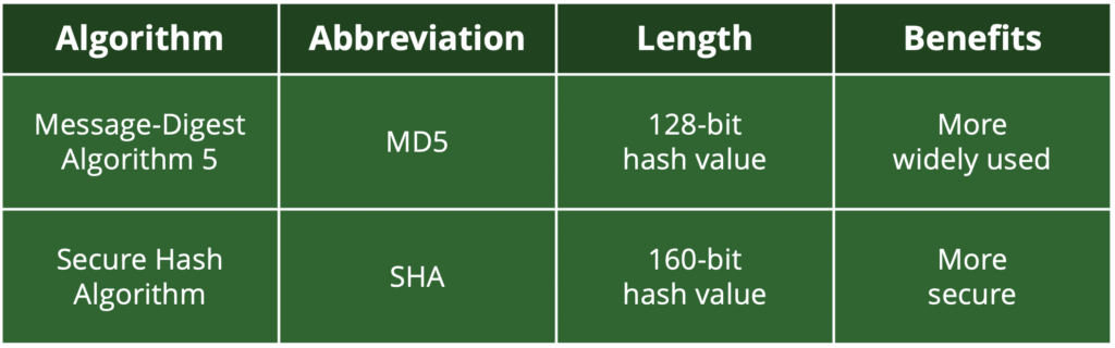 Hashing – transforms direct identifiers (such as an email address) into a unique string of characters by using a dedicated standardised algorithm, or ‘cryptographic hash function’. This transformation process is designed to be one-way and irreversible – so once the email address has been hashed, it cannot be reverted back to its original form. Different types of hashed algorithms exist – such as MD5, SHA-1, SHA-2, SHA-256, and even SHA-384. Each produces different hash values, depending upon requirements.