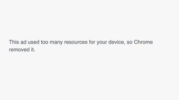 These thresholds were inspired by the (now since sunset) IAB Lean Standards and were refined by looking at Chrome’s metrics at the 99.9th percentile of network and CPU usage in ads. Google found that while only 0.3% of ads exceed this threshold on average, they account for 27% of network data used by ads and 28% of all ad CPU usage. What results is the ad being unloaded from the iframe and a message being displayed, as per the below.
