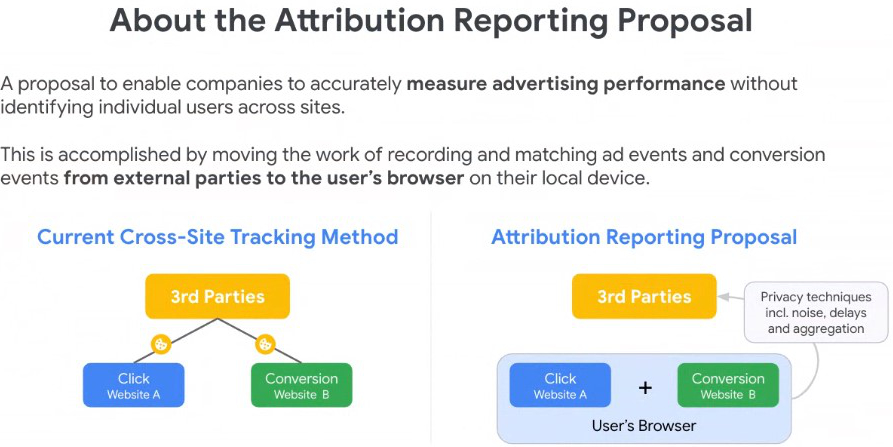 The intention here is to enable both click-through and view-through conversion attribution measurement without third-party cookies. See below for a general introduction to this key set of proposals, a summary of recent updates and some information on forthcoming origin trials and testing for industry participation – which we strongly advise our members to commit to sooner rather than later.