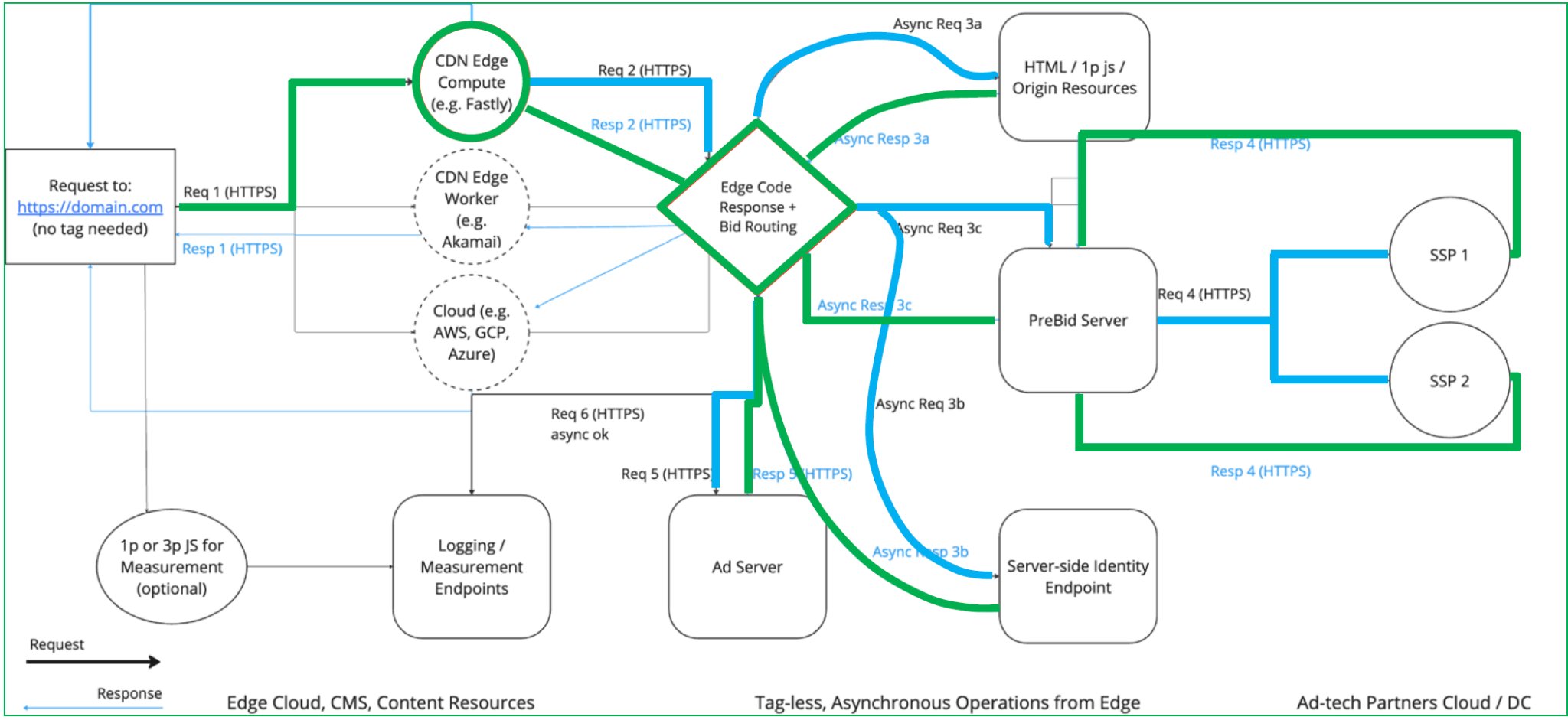 - The browser sends a request to Trusted Server at ‘edge.publisher.com’
