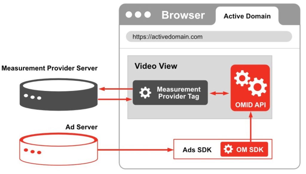 • Measurement providers tag listens to events in OMID API and sends the data to its servers.